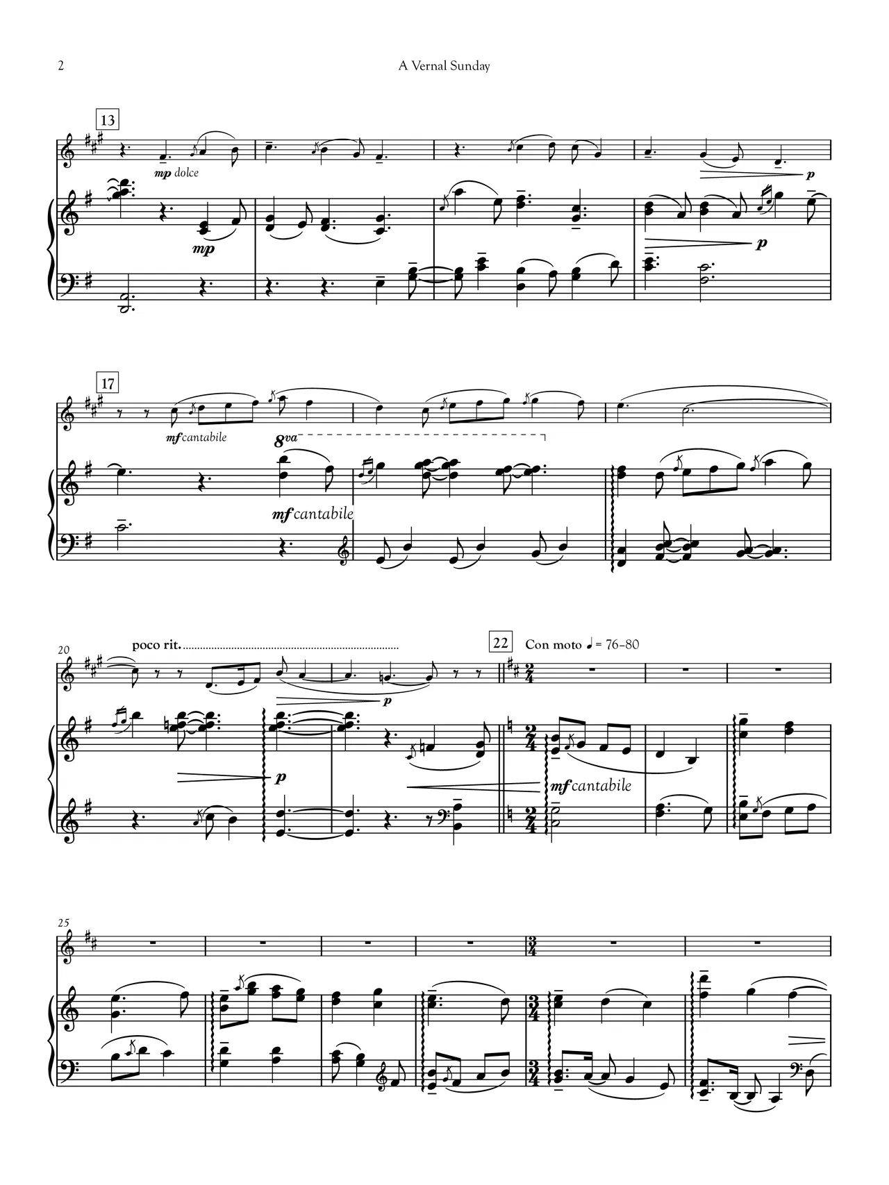 The word vernal can refer to two things: youthfulness or the season of spring. Sunday is also the beginning of a new week. The commissioner, Jennifer, said to me that she enjoys watching her child explore and discover the world for the first time. When we think of childhood, we also think of the spring season and things associated with it, such as butterflies, gardens, lush fields, trees, and water. A Vernal Sunday explores the emotions associated with being a child in the season of spring or summer, especially on Sundays when the entire family is most likely together, with endless play and discovery in the outside world that seems so vast when we’re so young and haven’t seen everything there is to a particular region. The music moves between slower and faster tempi in both duple and compound meters, lending to the feeling of discovery, playfulness, and unpredictability throughout.