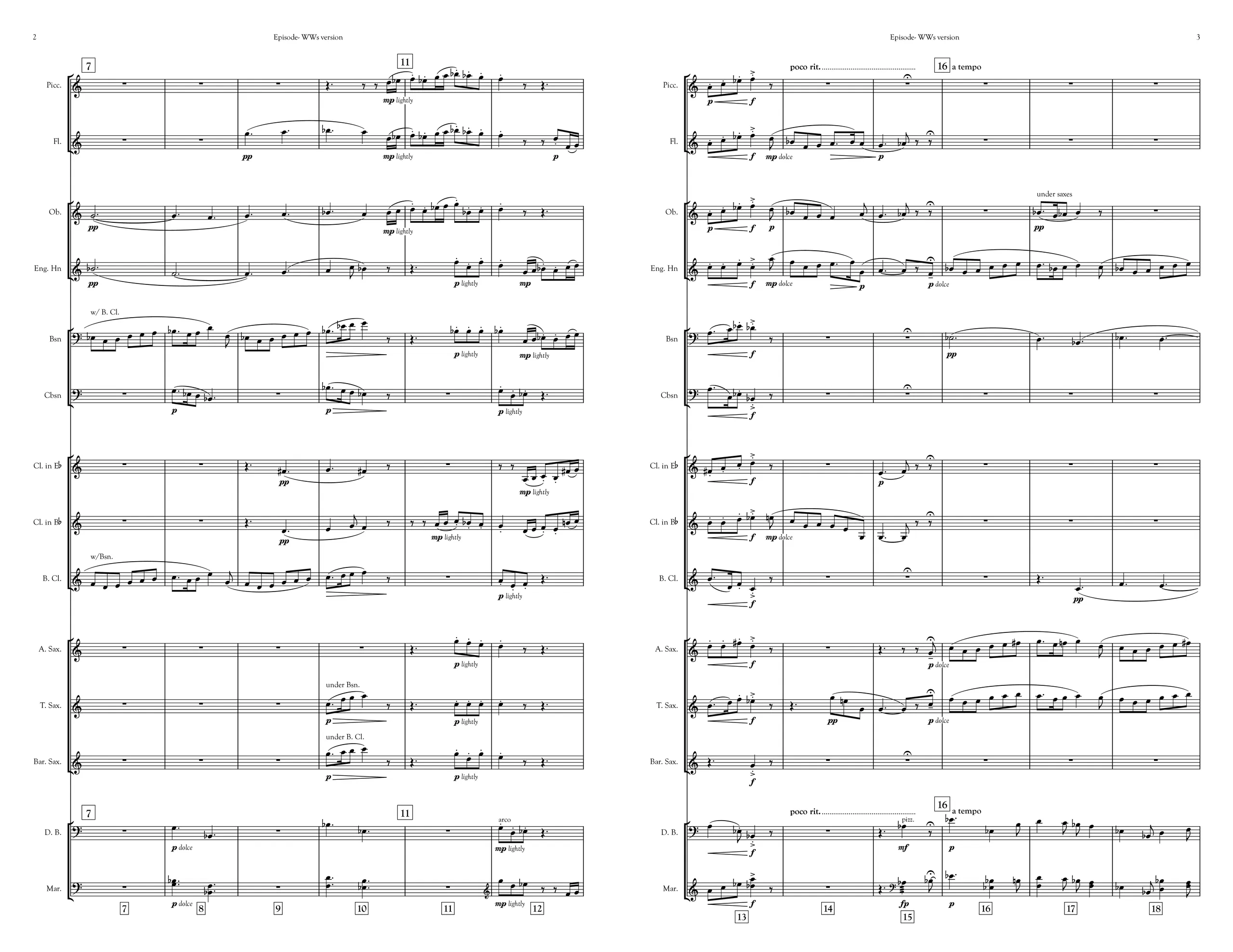 Woodwinds, Double Bass, and Marimba