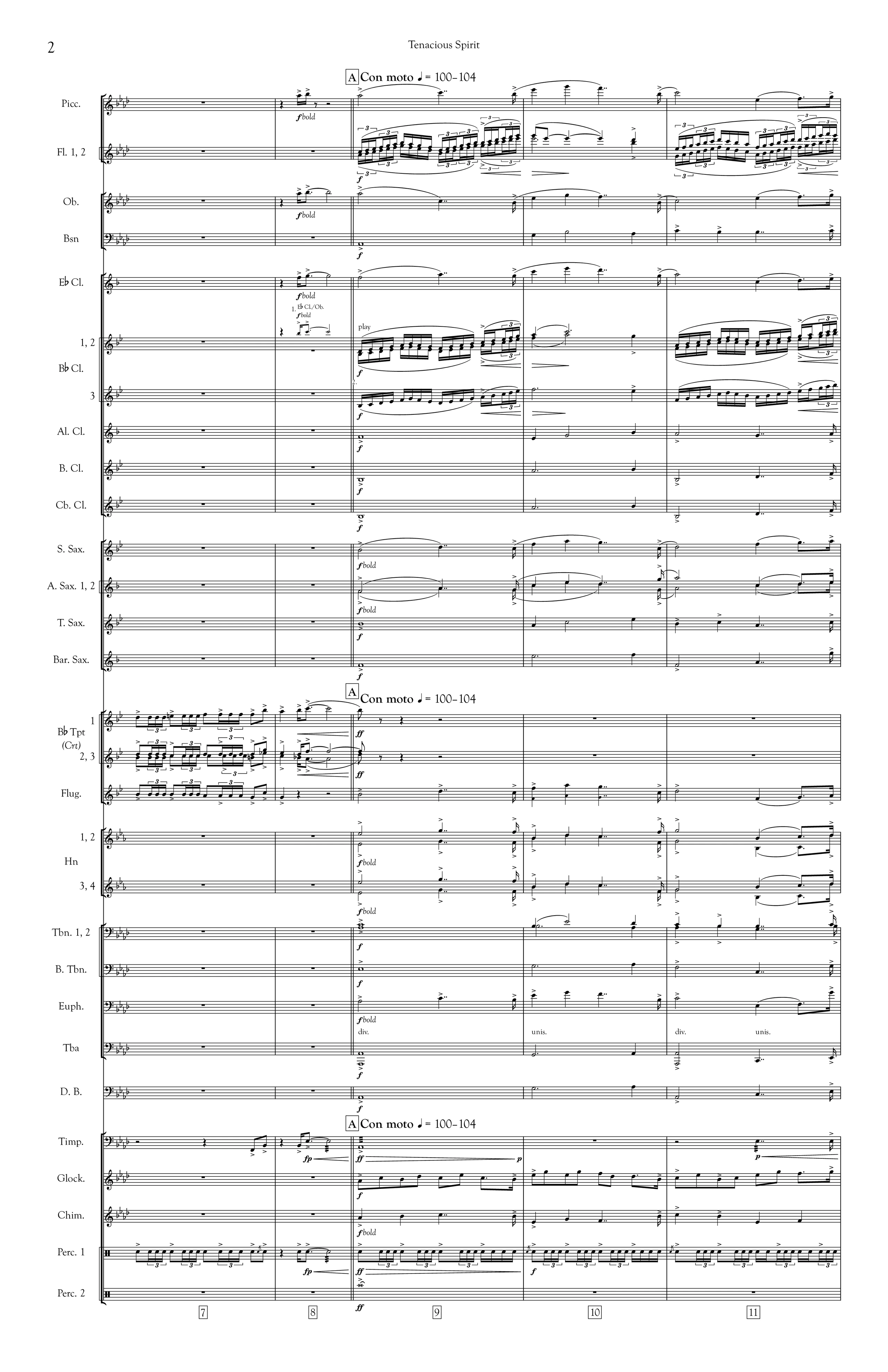 The feeling of accomplishing something while reflecting on how one has gotten there is empowering. There were many detours and introspective moments of doubt, but the goal was reached nonetheless! Tenacious Spirit starts triumphantly with the brass stating the theme on which the entire piece is founded. The fanfare is repeated by the full ensemble, and then the horns, before settling into a broader, lyrical section where the flugelhorn and low reeds take the spotlight. A waltz goes through some unexpected twists and turns before growing into an exciting ending that’s reminiscent of an organist pulling out all of the stops and flourishing.